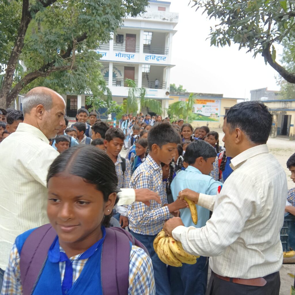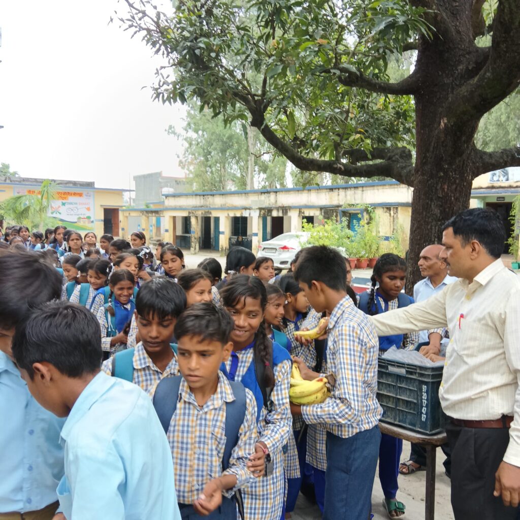 PM SHRI [GIC Bhogpur] में अतिरिक्त पोषण योजना के तहत छात्रों को केले वितरित किए गए
